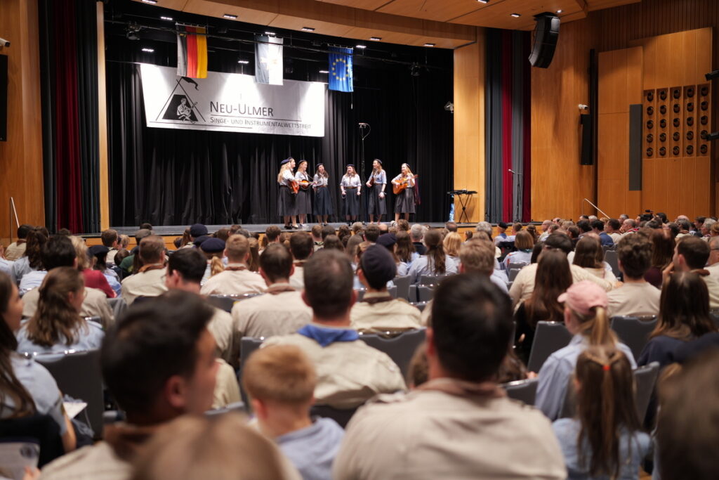 Mit einem fulminanten Singe- und Instrumentalwettstreit sind wir in das 50-Jahre-KPE-Jubiläumsjahr gestartet. So voll war die Halle noch nie, so lang ging der Abend noch nie, und vermutlich war auch die Stimmung so gut wie noch nie! Das bekannte Format der „Neu-Ulmer Meistersinger“ – wie unser Wettstreit seit Jahren offiziell heißt – bot den äußeren Rahmen, um auf 50 Jahre KPE zurück zu blicken, sich an unzählige Erlebnisse und gemeinsame Abenteuer zu erinnern, und nicht zuletzt alte (und neue) Freunde und Fahrtenkameraden wieder zu trefffen. Wer da alles da war…! Und natürlich stand das Singen und Musizieren im Mittelpunkt.
