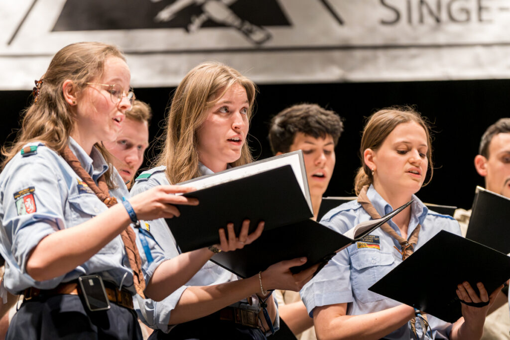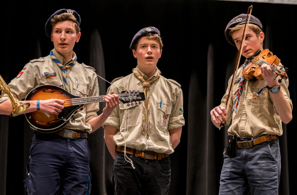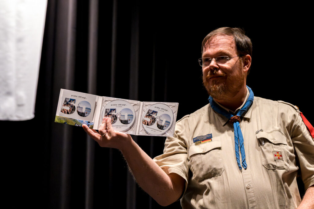 Nach der Verkündigung der Wertung (die man im CD-Booklet nachlesen kann, nähere Infos dazu bei bundessekretariat@kpe.de) ging das gemeinsame Singen bei der Abendrunde im „kleinen Saal“ weiter. BiPi war extra von Brownsea Island herüberkommen, um mit uns das KPE-Jubiläum zu feiern. Begeistertes Singen wechselten sich ab mit Quiz-Spielen zur KPE-Geschichte. Viel zu schnell war es Zeit für den Gute-Nacht-Segen!